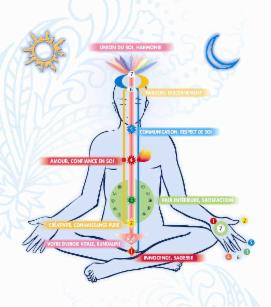 A la base de ce système réside dans notre sacrum une énergie latente régénératrice : la Kundalini. Lorsque cette énergie s’éveille spontanément en nous dans le canal central, elle traverse chaque centre d’énergie ou chakra pour sortir au niveau de la fontanelle, au sommet du crâne. Ce processus est appelé réalisation du soi. Il aide à équilibrer les canaux latéraux, nous préservant ainsi des excès du côté gauche (léthargie, dépression) et du côté droit (hyperactivité, agressivité). Il permet d’aller au-delà du flot permanent des pensées qui nous empêchent de profiter pleinement de la vie et du présent, d'être en relaxation. C’est l’authentique état de méditation décrit par toutes les traditions.